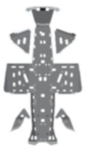 4 mm tjocka aluminiumplåtar ersätter den tunna plasten som ofta sitter original & som mer är ett skrapskydd snarare än ett skydd för hårdare smällar. Viss modifiering kan ibland vara nödvändig vid montering av t.ex. monteringssats till plogblad.