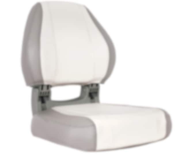 Bekvämt och praktiskt fällbart båtsäte i stilren grå/vit design.