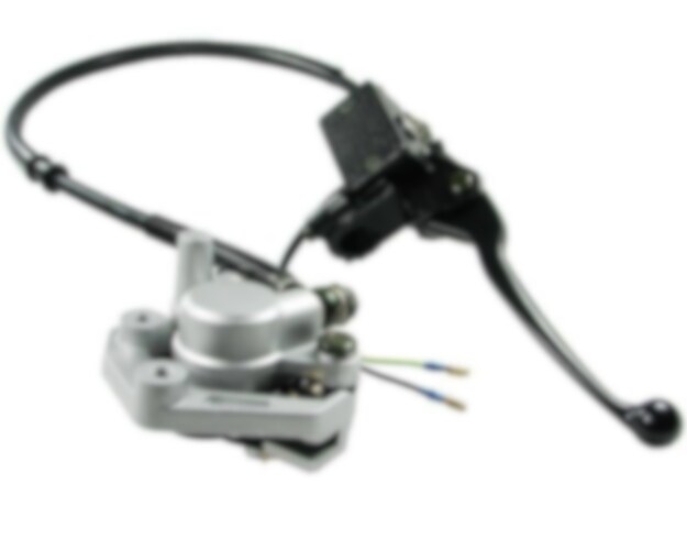 This brake system consists of a hand brake cylinder (hand brake pump) with lever, hose, calliper with pads and brake light switch.