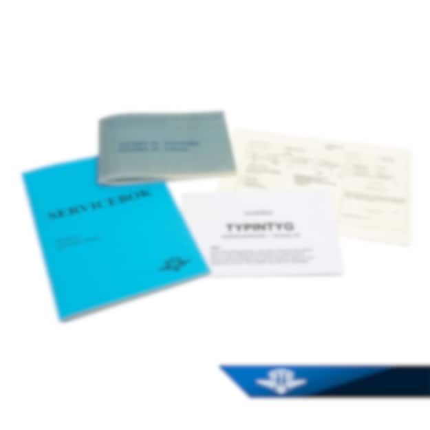 - Kuvert för förvaring av typintyg samt plastficka i tjockare plast för förvaring av hela dokumentationen.