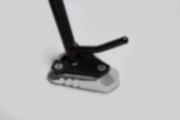 Sidestand Foot ExtensionThis durable foot extension has a large contact surface for enhanced stability, even on uneven ground and soft soil Side stand foot with doubled contact surface (bike specific) Simple mounting onto the original side stand using three screws High-quality workmanship: CNC-milled, made of anodized aluminum alloy and corrosion-resistant stainless steel STS.08.102.10000/S