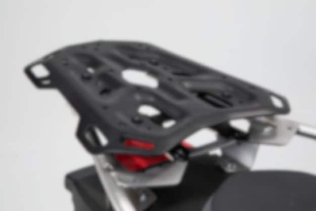 Adventure RackExtra durable luggage rack for long tours on and off the road Its extreme durability during vibrations, impacts and high weight was tested in the lab and off-road under harshest conditions Many functional bores: The adapter kits for TRAX top cases, SysBag15/30 bags with adapter plates are sold separately SW Motech also offers adapter kits for top cases from Givi, Krauser and Shad Easy lashing of luggage to the numerous large eyes, 25 mm closures can also be threaded through Particularly generous storage surface Simple assembly to original attachment points with bike-specific attachment components Made of low-weight and durable 4 mm aluminum alloy Effective corrosion protection from black powder coating For stainless steel rack
