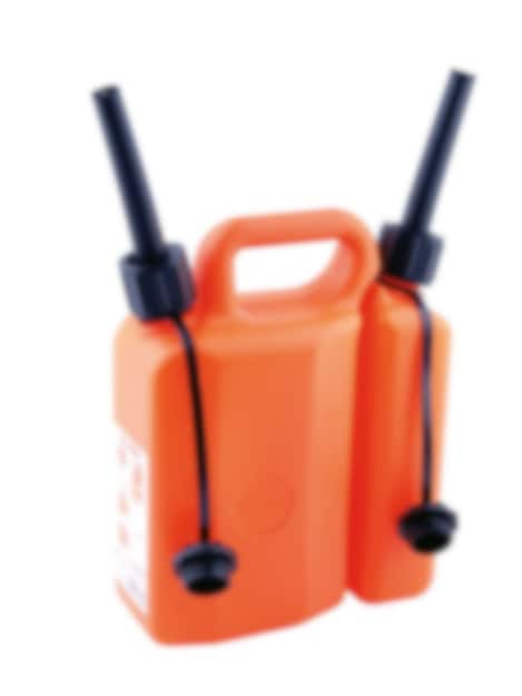 Kombidunk för 2 takt-bränsle och sågkedjeolja. Inkl. 2 påfyllnadspipar, vändbara för invändig förvaring, samt kombinyckelfäste. (K-nyckel EJ inkl.)