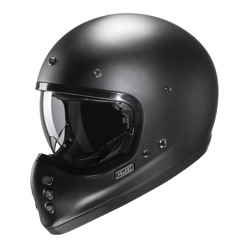 V60 har en klassisk stil med en modern tvist. Inspirerad av FG-01 hjälmen från 1980-talet. V60 har ett lätt glasfiberskal & ett stort solvisir. Inbyggda högtalarfickor & urtagbar, tvättbar inredning. Kindkuddarna har emergency release system för extra säkerhet. Inkluderat är också en avtagbar hjälmskärm.