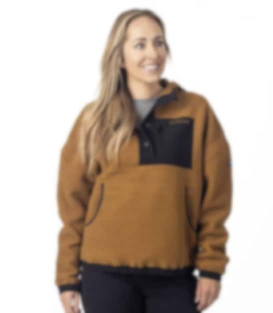 Fleecejacka Klim W´s Sira High Pile Hoodie, Saddle Brown - Black