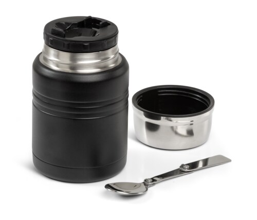 En stilren och slitstark mattermos i rostfritt stål med svart pulverlack. Perfekt för att hålla maten varm eller kall under längre utflykter, arbetsdagar eller resor.