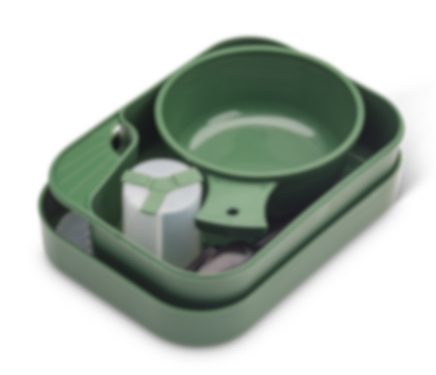 Praktisk tallrikslåda med allt du behöver för utflykten, campingturen eller vandringen. Setet innehåller 2 djupa tallrikar, en mellankåsa, kombinationsbestick samt salt- och pepparströare – allt smidigt samlat i en kompakt förvaringslåda.