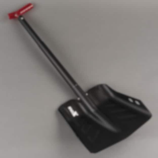 Svart delbar spade i aluminium med såg i skaftet. Passar utmärkt på skoter- eller fjällvandringsturen!