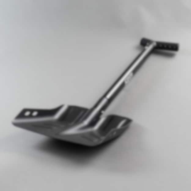 Svart delbar spade i aluminium med såg i skaftet. Passar utmärkt på skoter- eller fjällvandringsturen!