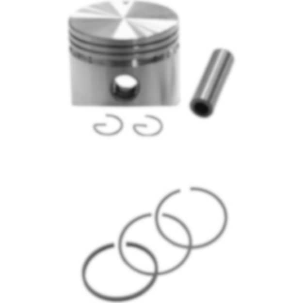 Kolv, kolvringar, kolvbult och låsringar.