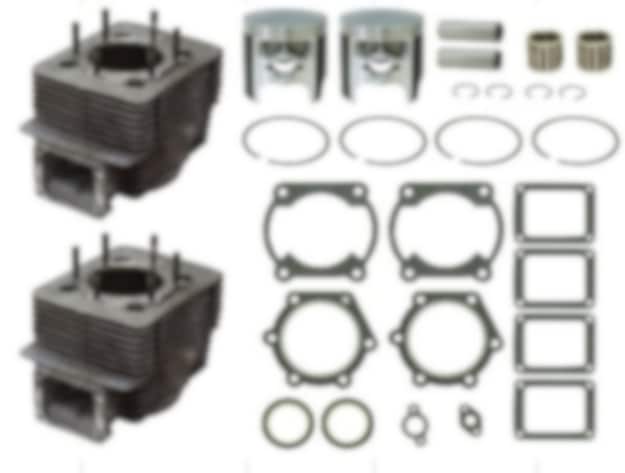 Komplett cylinderkit med cylindrar, kolvar, packningar och nållager.