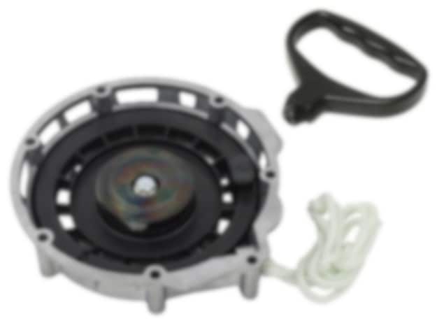 Komplett startapparat med kåpa, linhjul, fjäder, klackar och snöre.