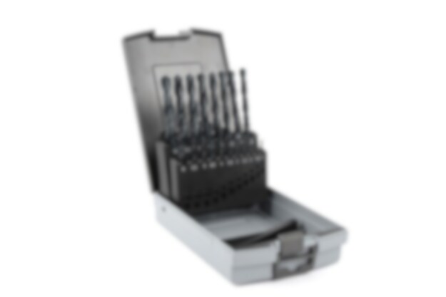 19 olika borrar. Lämplig för borrning i järn och metall.